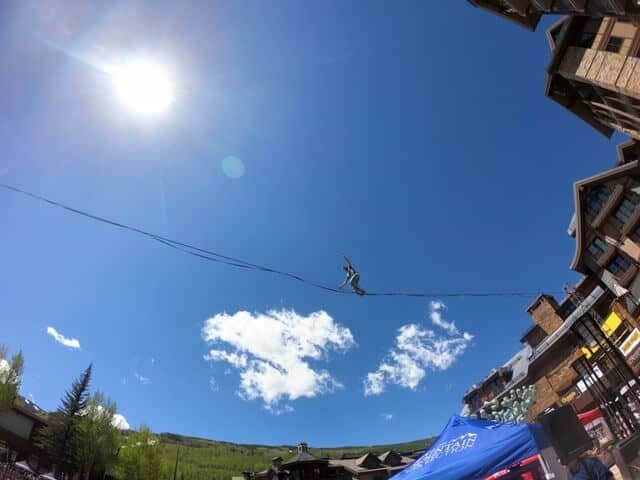 中央に位置するSolaris PlazaではSLACKLINEのショーや地上から見上げるほどの高さのハイラインをスラックライナーが空中散歩しているかのように綱渡りしている姿は見応え抜群。