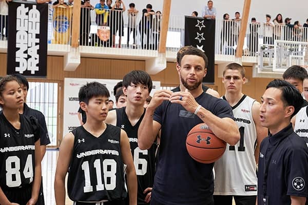 さらに翌6月23日、カリーは「Underrated Tour, powered by Rakuten」が行なわれた都内の大学に姿を現した。カリーが高校生に指導することを目的とした同ツアーは、今年1月中旬から3月下旬にかけてアメリカで7回実施され、今回はアメリカ以外の国で初の開催。ツアー名になっている「Underrated(過少評価)」は、カリー自身が強豪大学に進めなかった経験から名づけられた。