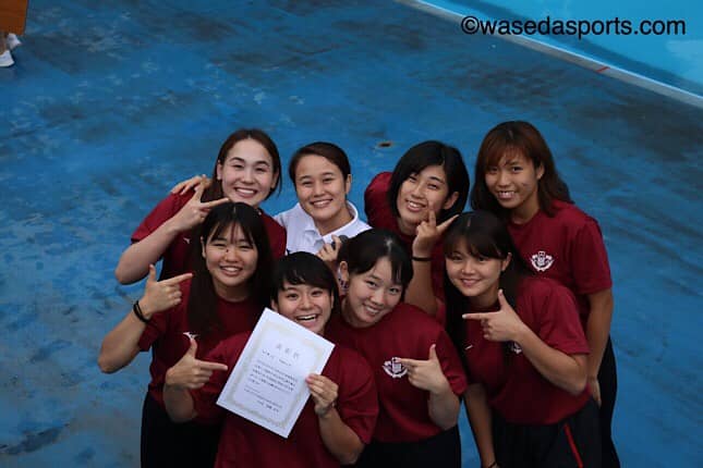 次は、日本選手権の関東予選で、今コーチをしていらっしゃるOGの徳用万里奈(平30社卒=現稲泳会)さんだったり、齋藤有寿(平30スポ卒=現稲泳会)さんとかもチームに入って稲泳会として出場するので、また早稲田のプレーの幅も広がっていくと思いますし、それまで1か月弱時間があると思うので今回の学生リーグのオフェンス、ディフェンスの課題をしっかり修正して波がないように早稲田らしい水球が毎試合できるようにしていきたいと思います。