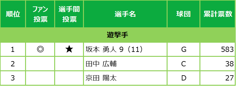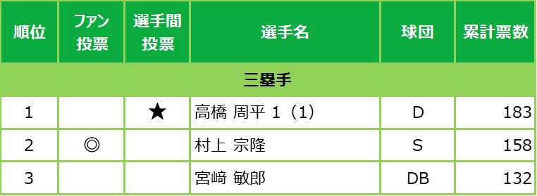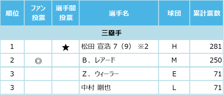※2 松田 宣浩… 選手間投票7回のうち1回不出場