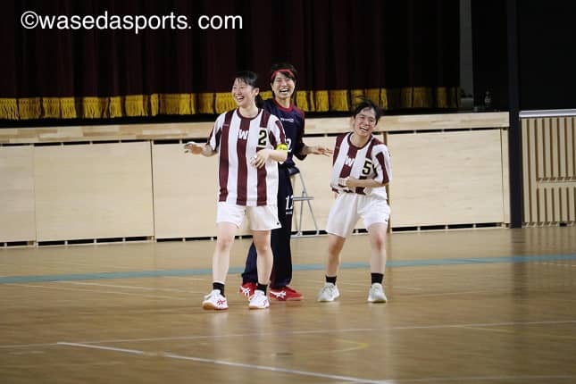 | GK 大沢アビ直美(スポ4=東京・佼成学園女) LW 杉山瑞樹(社4=神奈川・横浜創英) LB 吉田瑞萌(スポ3=東京・佼成学園女) PV 垣内三春(社3=富山・氷見) CB 岡崎麗(教3=埼玉・浦和実) RB 山根萌(スポ3=千葉・昭和学院) RW 衣川直緒(社3=愛知・星城) | ||||
