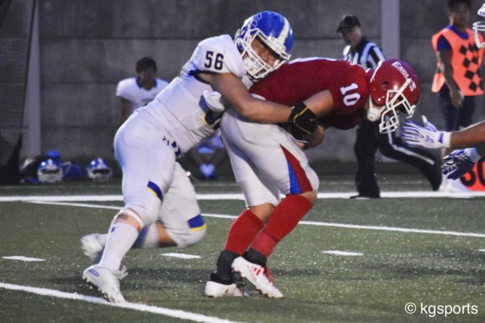 <写真・堅い守りを見せたDL野村>