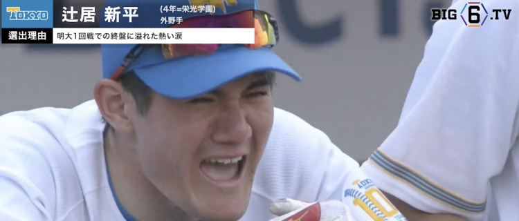 主将としての責任感が溢れた場面だった。明大1回戦で終盤まで好投を続ける坂口(④日比谷)を助けてやりたい、点を取ってやりたいという思いが溢れ出てきたような熱い涙。秋には嬉し涙が見たい!