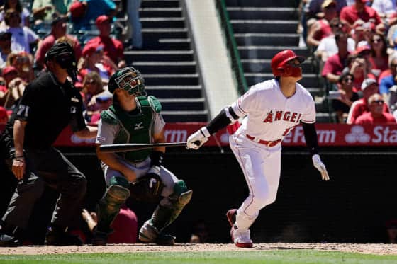 アスレチックス戦での1本目は右中間スタンドの婦人がキャッチアスレチックス 12-3 エンゼルス(日本時間1日・アナハイム…