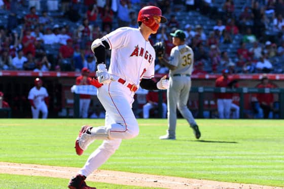 本拠地アスレチックス戦で2本塁打を放ったエンゼルス・大谷翔平【写真:Getty Images】