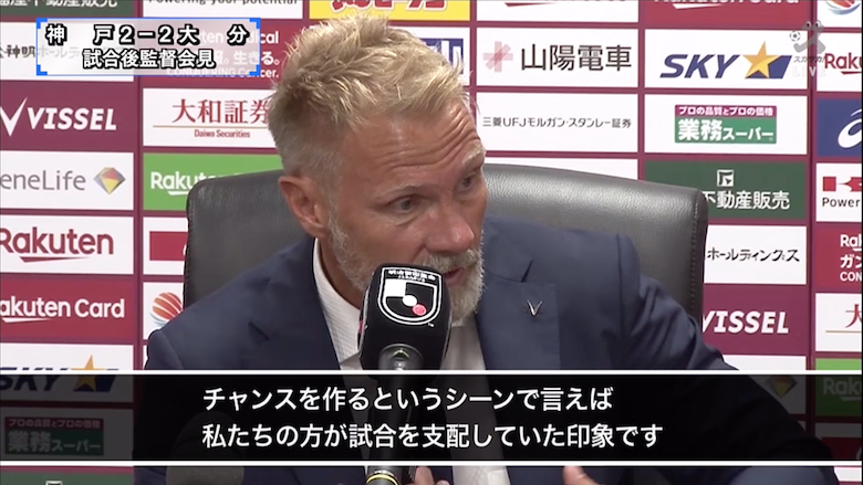 「失点シーンでは、神戸はボールよりも後ろに11人がいた。ただ、人数がいることで安全と思ってしまって、信じられないようなシーンを生み出してしまった。常勝していくためには、この試合を良い教訓にできるかどうか」