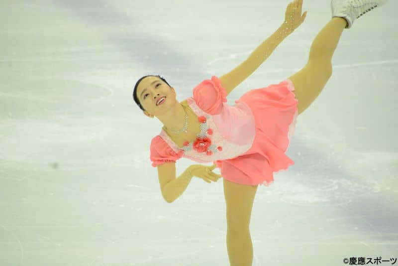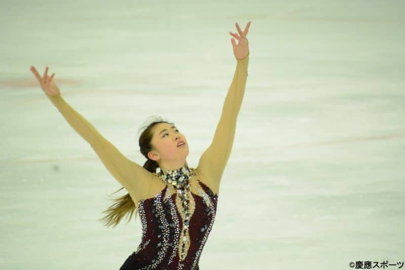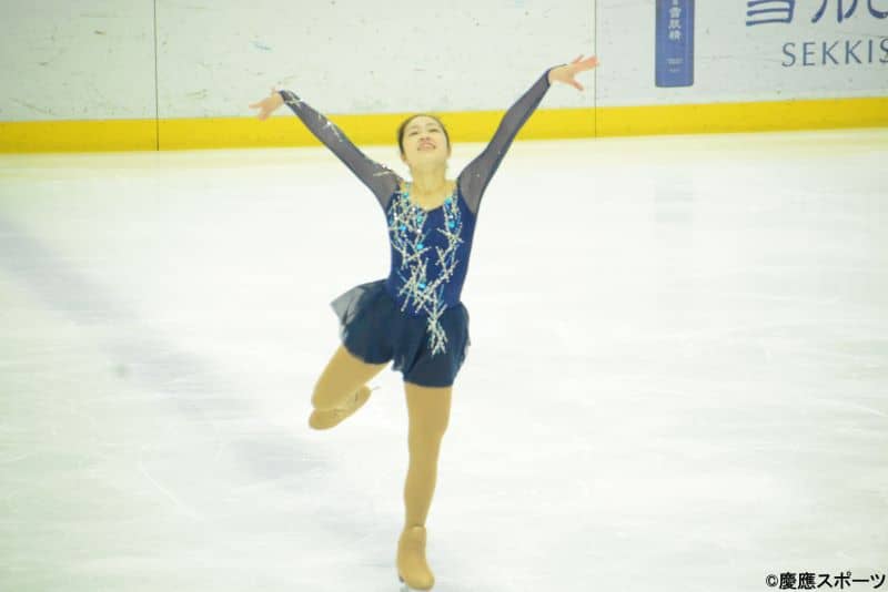 女子B-2クラスには、3人のエントリーのうち2人が慶大勢。まず、登場したのは新田陽奈子(東京女学館)。転倒など大きなミスはなかったものの、ジャンプの細かなミスが重なり得点を伸ばすことができなかった。それでも、「ニューシネマパラダイス」の世界観を途切れることなく、見事に演じきった。