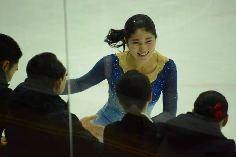 ステップは後輩の(花城)桜子と一緒に練習しているときに、上半身の使い方とかを教えてもらったりしていて、意識して練習してきたところでした。なので、上半身を大きく使いながらやるっていうのを意識しながら滑ることができました。もっともっとエッジを深く使って滑りたいと思います。