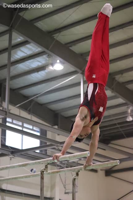 雨がしとしとと降る梅雨の6月30日。今年も伝統の早慶戦がやって来た。慶大日吉キャンパスにて行われた今大会は今年で72回目の決戦となる。相手の応援に負けず劣らずの熱気を見せる応援席に見守られ、早大体操部は計6名のメンバーで攻めの演技を次々と披露した。