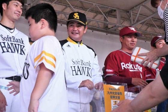 また楽天の協力について「ありがたいこと。日本のどこで何が起きても協力し合うことが大事。僕たちも東北の皆さんのためにできることがあればやっていきたい」とした。なお、5日にはタマホームスタジアム筑後でも2軍公式戦(広島戦)前に募金活動が行われる。(藤浦一都 / Kazuto Fujiura)