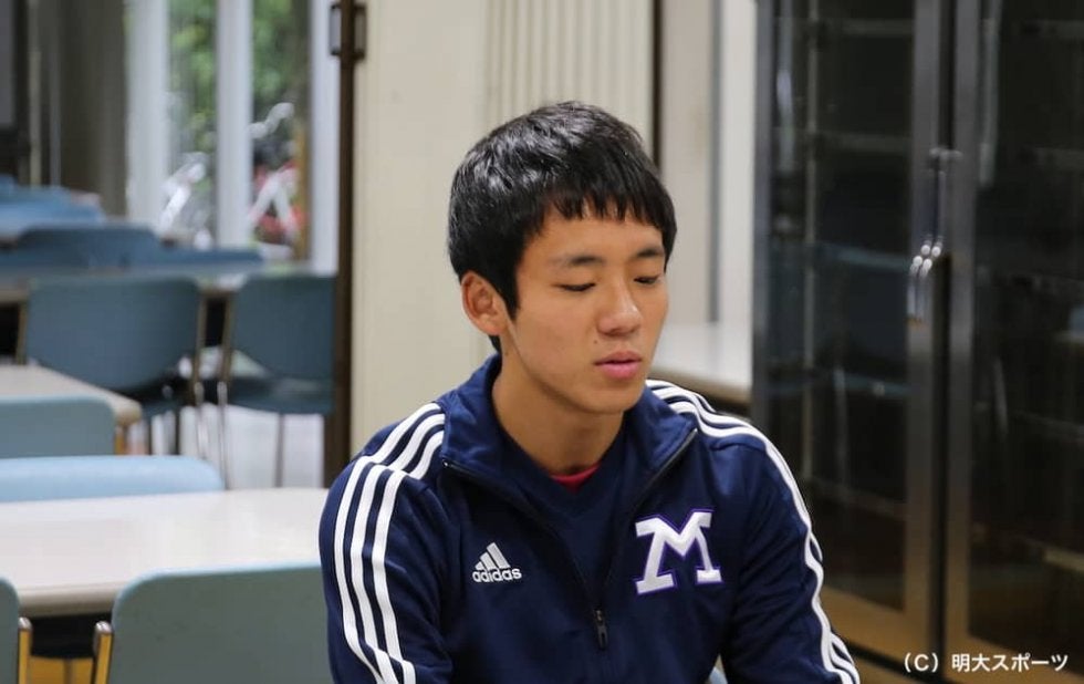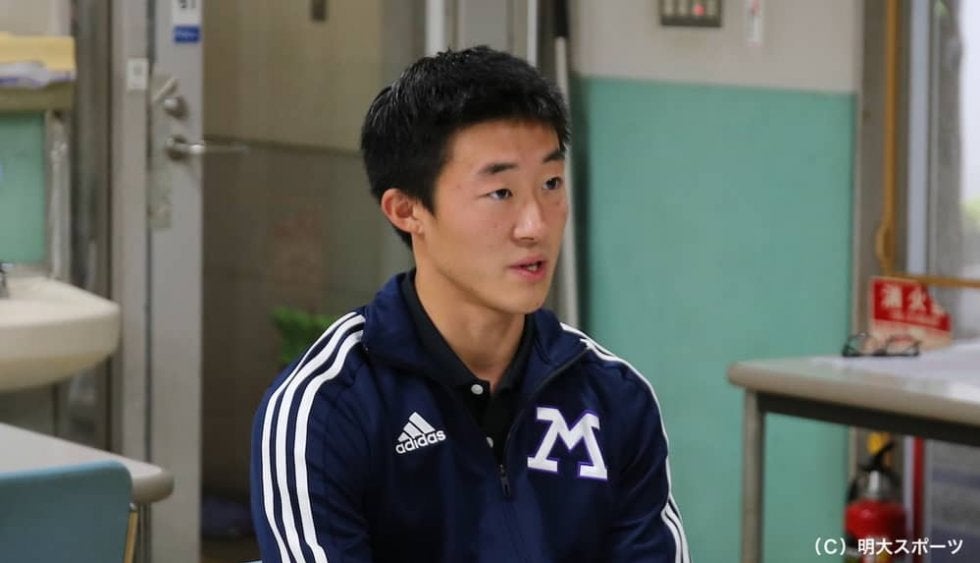「高校にスポーツ推薦で入学して、インターハイ目指してやってきたんですけど、南関東止まりのふがいない結果に終わってしまいました。そんな時に明大の渡邉コーチから声をかけてもらって、もう一度明大を背負って戦いたいと思いました。八幡山グラウンドも高校の時に使っていた場所だったので、使い慣れた環境で練習できるなら、と思って明大を選びました」