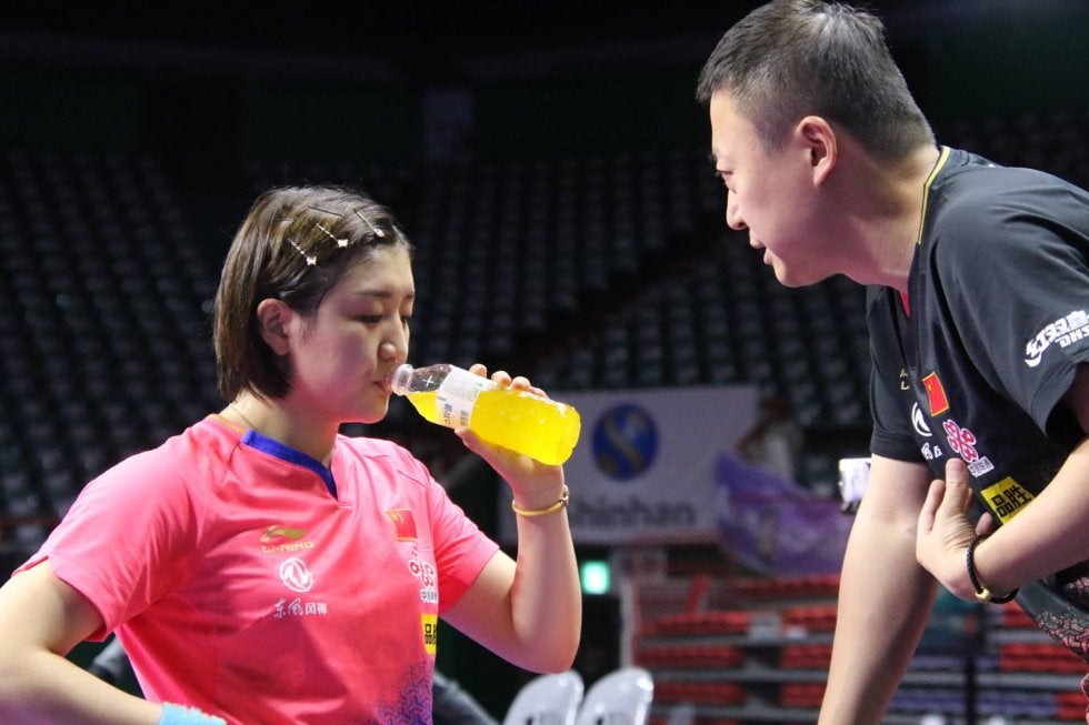 写真:ベンチコーチの馬琳のアドバイスを受ける陳夢(中国)/撮影:ラリーズ編集部