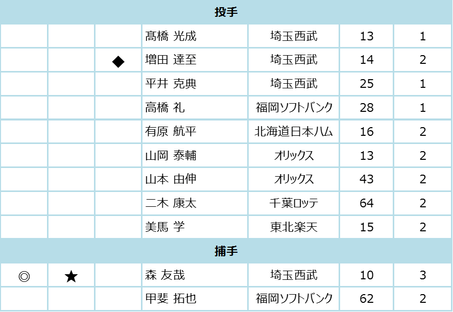 ◆増田達至選手(埼玉西武)を補充 【今宮健太選手(福岡ソフトバンク) けがのため欠場】