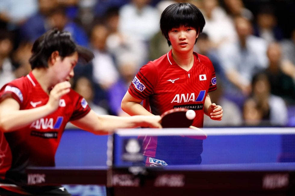写真:ジャパンオープンでの木原美悠(JOCエリートアカデミー・写真右)/長崎美柚(JOCエリートアカデミー/大原学園)/提供:ittfworld