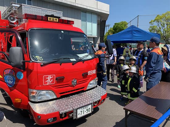 この日は、夏の暑さを思わせる好天に恵まれたこともあってだろう。ズラリと並んだ消防車やパトカー、白バイ、高所作業車、ショベルカーの前には、たくさんの親子づれが列を作り、子どもたちが消防服を着て消防車に乗り込んだり、高所作業車のゴンドラに乗って高さを体感するなど、憧れの『車』を前に、笑顔を見せた。
