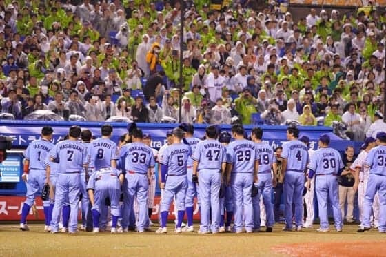 開始時天候不良で5回終了予定も…ベンチ前に向かい“お願い” ヤクルトの球団設立50周年を記念したOB戦「オープンハウス …