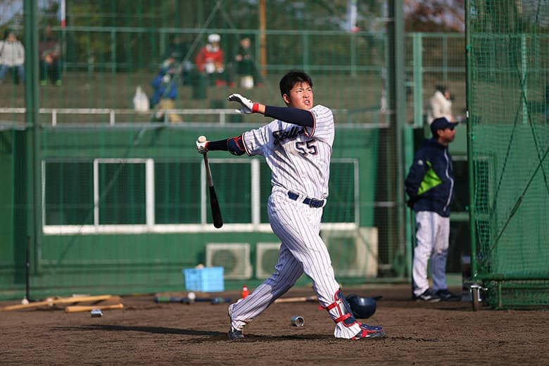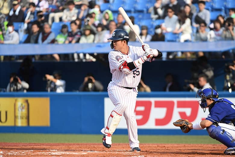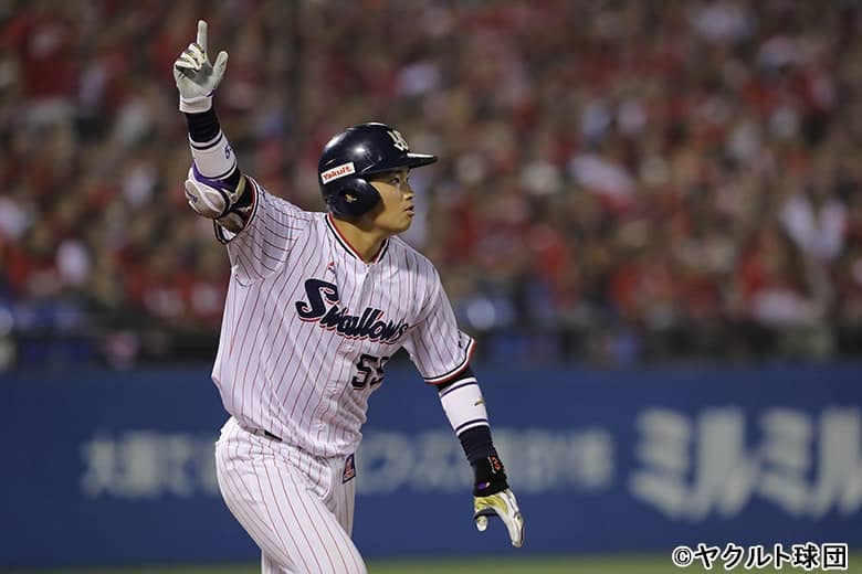 九州学院高校(熊本)時代は通算52本塁打を放ったが、甲子園出場は1年生の夏(初戦敗退、無安打)だけで、全国的な知名度は低かった村上。2017年のドラフトでヤクルトから1位指名されるも、7球団が競合した清宮幸太郎(北海道日本ハムファイターズ)の外れ1位だった。高校時代は捕手だったが、入団後すぐに内野手にコンバートされ、プロ1年目の昨年は2軍でスタート。すると17本塁打を放つパワーを見せ、シーズン終盤の9月に1軍へ昇格し、高卒ルーキー史上7人目となる初打席初本塁打の離れ業をやってのけた。シーズン終了後は、主に若手が参加する宮崎のフェニックスリーグや台湾のウインターリーグでプレー。フェニックスリーグでは中田翔(北海道日本ハムファイターズ)の持っていた記録(6本塁打)を大きく更新する10本塁打のリーグ新記録を樹立した。そして今季のオープン戦では4本塁打を放ち、開幕1軍先発メンバーの座をつかんだのだ。