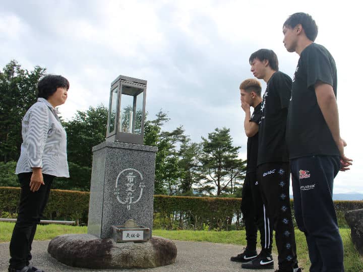 こちらは阪神大震災を機に神戸市に作られた「1.17希望の灯り」から分灯された、ガス灯の「3.11希望の灯り」だそうです。選手たちは真剣な表情を浮かべ、説明に聞き入っていました。