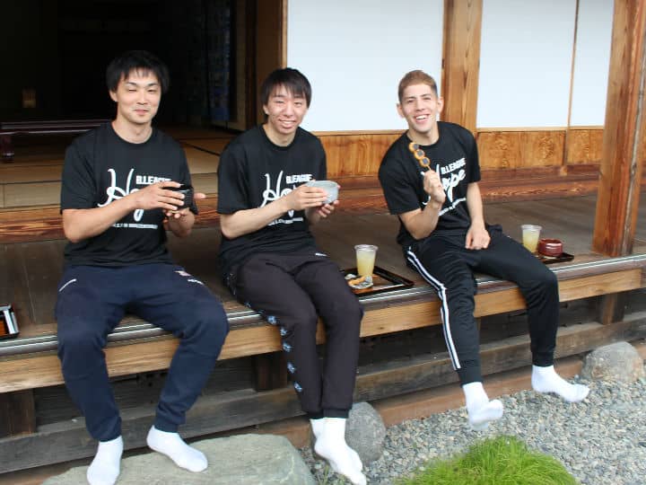 その日の夜は(写真左から)ベンドラメ礼生(サンロッカーズ渋谷)、枡田祐介(岩手ビッグブルズ)、木下誠(名古屋ダイヤモンドドルフィンズ)の3選手が、陸前高田市の魅力を紹介する『旅する陸前高田』を敢行。これは試合会場付近のオススメスポットを紹介し、Bリーグ観戦を促す『B旅』のスピンオフ企画。選手たちにとって初めての『民泊』体験の様子をお届けします。