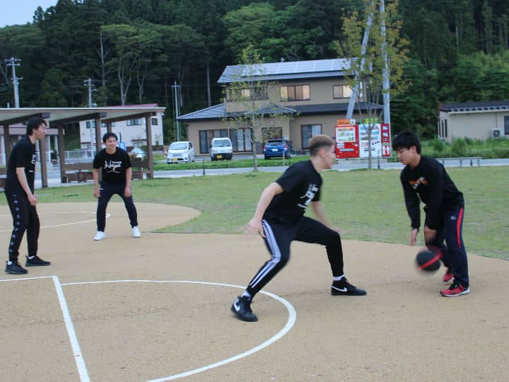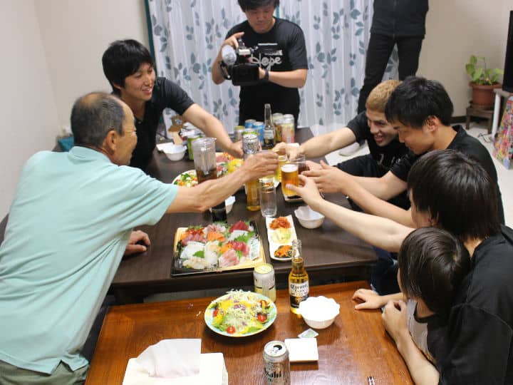 「アバッセたかた」を後にした一行はいよいよ民泊体験へ。今回お邪魔したのは村上さんご一家。父、大夢(ひろむ)さんは地元のバスケクラブでコーチをしており、バスケ選手が来るということで初めて民泊に応募したそうです。