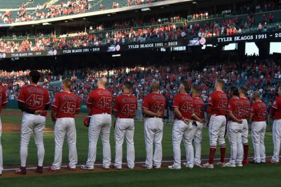 スカッグスの背番号「45」を身にまとったエンゼルスが継投でノーヒットノーランを達成【写真:Getty Images】