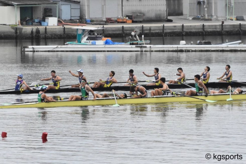 <写真・予選を1着でゴールし、決勝進出を決めた男子エイト> 7月13日、大阪府立漕艇場にて2019年度関西選手権が行われ…