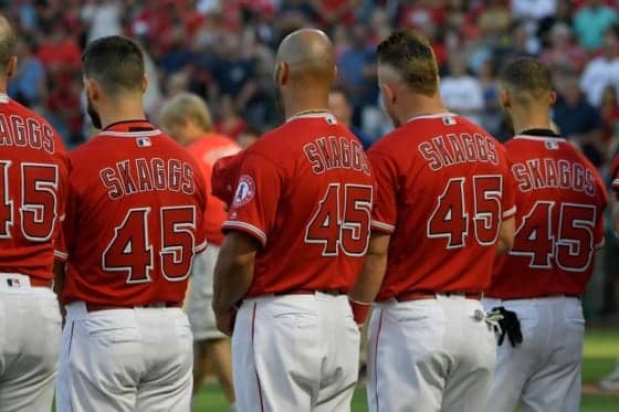 スカッグスの背番号「45」を身にまとったエンゼルスが継投でノーヒットノーランを達成【写真:Getty Images】