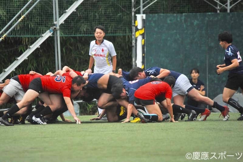 後半に慶大も2トライを決め追い上げるが、終盤に突き放されて敗れた。