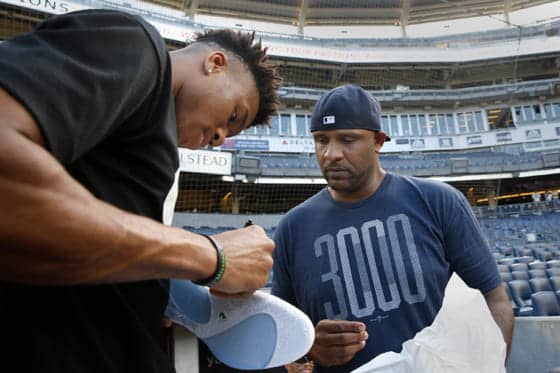 ヤンキース戦に登場したヤニス・アデトクンボとヤンキースのCC・サバシア【写真:AP】