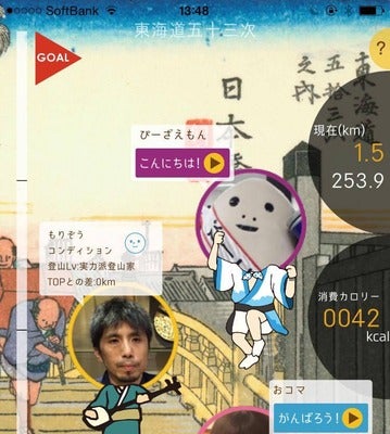 四月一日企画は、iPhoneアプリ「階段山のぼり」を大幅にアップデートし、東海道五十三次や山とも募集掲示板などを追加した。