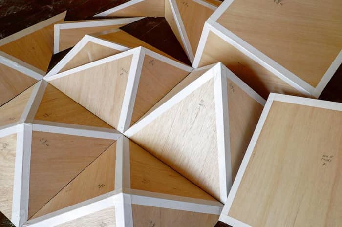 ひとつずつ木の表情(色、模様など)を厳選し、切り出し、組み立てる。各工程はそれぞれ別々の部屋を使い製作を行う。