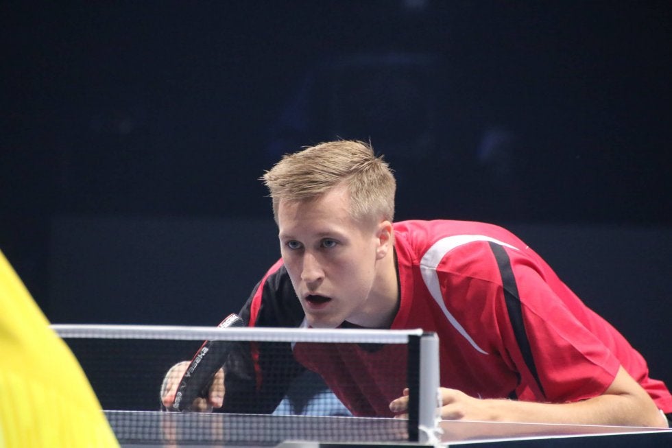 写真:バックハンドに苦しめられた丹羽孝希(スヴェンソン)/撮影:ラリーズ編集部