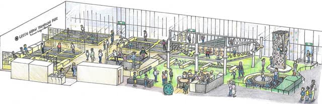 「グリーンアロー トランポリンパーク」は、面積約1,500平方メートル、高さ約6mの関東最大級の屋内型スポーツアスレチック施設だ。「トランポリン」「ロープコース」「クライミング」の3種類のスポーツアクティビティ、未就学児を対象とした「キッズエリア」と「カフェエリア」を併設する。