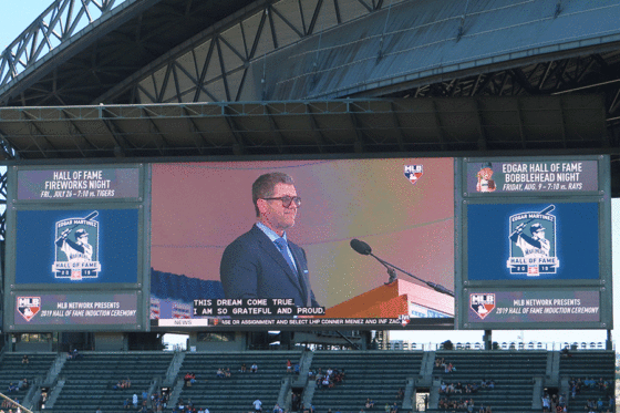 マリナーズ一筋に18年間プレーし、昨年まで同チームの打撃コーチを4季務めたエドガー・マルティネス氏が21日(日本時間22日)、ニューヨーク州のクーパーズタウンで米野球殿堂入り式典に臨んだ。マリナーズの本拠地、シアトルのT-モバイル・パークではエンゼルス戦を前に、現地からのライブ映像が大スクリーンに映し出され、マルティネス氏が登場すると球場はファンの歓喜に包まれた。
