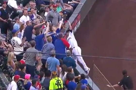 22日(日本時間23日)に行われたマリナーズとレンジャーズの一戦で、ファンが選手の捕球を“妨害”する一場面があった。