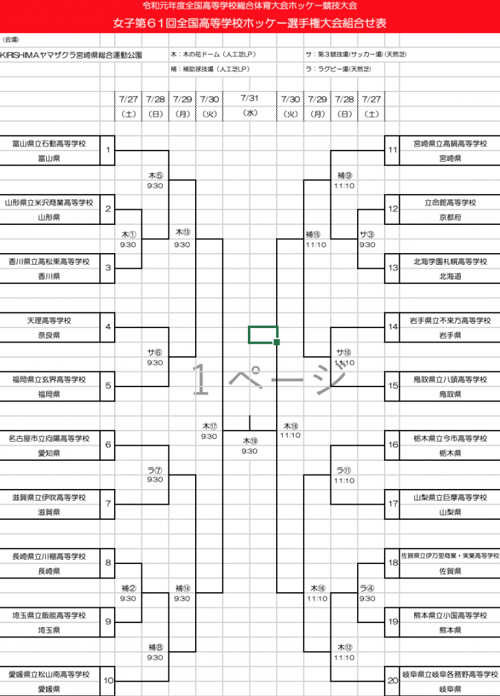 ホッケー(男女)組み合わせ/南部九州高校総体インターハイ2019