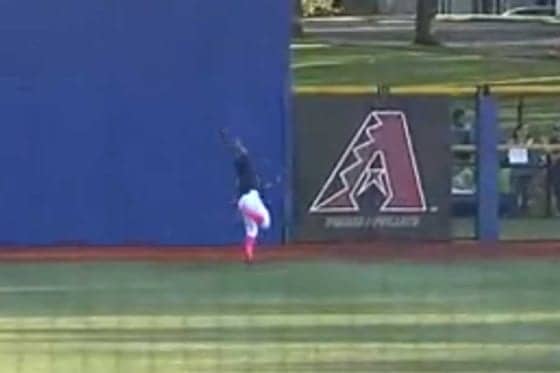 24日(日本時間25日)に行われたダイヤモンドバックス傘下1A-ヒルズボロVSジャイアンツ傘下1A-セイレムカイザー戦。3回無死一塁の場面で、セイレムカイザーのホートビーがセンター右への大飛球を放つと、中堅のバローサが打球を追った。そして、ギリギリでグラブにボールを収めた、かに見えたが……そのままバランスを崩してフェンスに激突。ボールを落としたが、それだけでは終わらなかった。