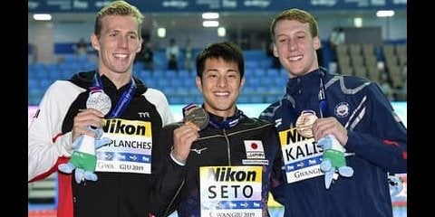 世界水泳選手権大会、競泳5日目の男子200m個人メドレーで、瀬戸大也(ANA)が1分56秒14の自己ベストを更新し…