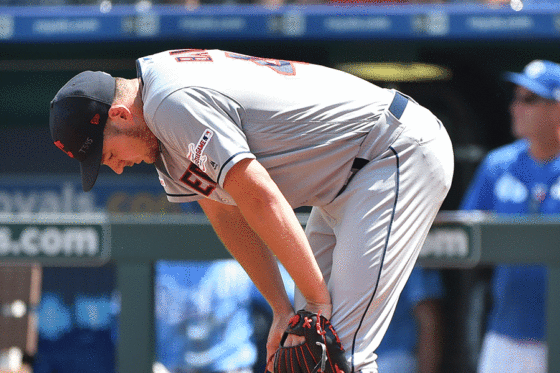 降板を告げられると自らの不甲斐ない投球に怒りを爆発、外野にボールを投げつけるロイヤルズ 9-6 インディアンス(日本時間…