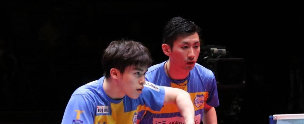 写真:森薗政崇(左)・上田仁(ともに岡山リベッツ)/撮影:ラリーズ編集部卓球団体戦にはダブルスも必要卓球の団体戦は、ダブ…