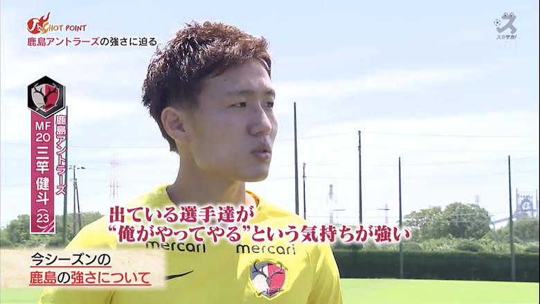 7月26日放送のサッカー情報番組「スカサカ!ライブ」#113では、鹿島を特集。東京Vなどで活躍した戸川健太が練習場に足を運び、取材を行った。