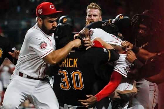 レッズ-パイレーツ戦で危険な大乱闘劇、投手がマウンドから相手ベンチに猛ダッシュし…