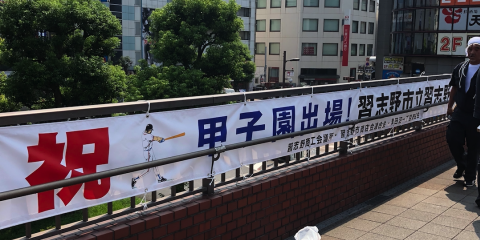 習高ナインへ届け!猛暑に負けず横断幕設置 3日組み合わせ抽選会 | 野球
