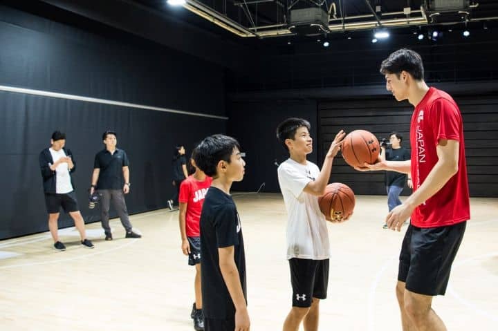 そこからバスケットコートのあるスタジオで子供たちとプレーしながらの撮影になると、それぞれが試合では見られない温和な表情となり、メディア対応やイベントで慌ただしい一日の中で束の間ではあるが『ただのバスケ好き』の一面が垣間見られることになった。