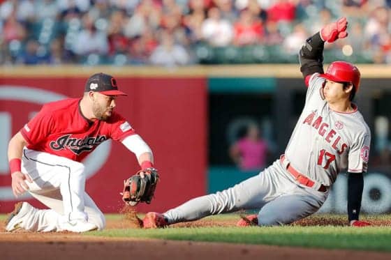 敵地インディアンス戦で「3番・DH」で2試合ぶり先発出場したインディアンス – エンゼルス(日本時間3日・ク…
