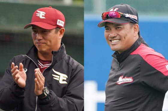 楽天・平石洋介監督(左)、ロッテ・井口資仁監督【写真:荒川祐史】