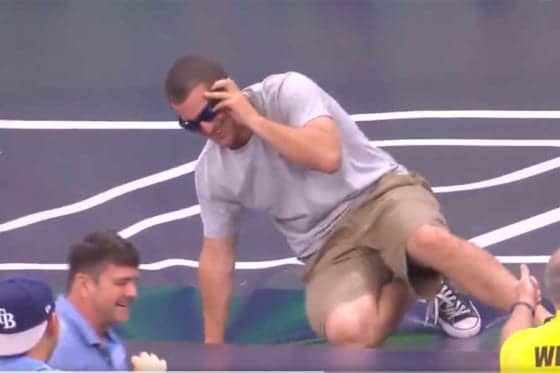 ボールを追いかけ、シートの上をほふく前進で突き進んだ男性ファンレイズ 8-6 マーリンズ(日本時間4日・タンパ) 3日(…