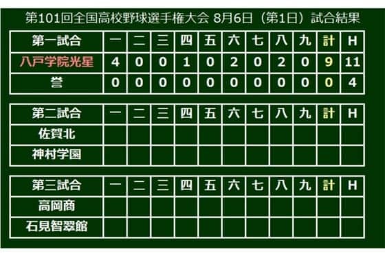 第101回全国高校野球選手権大会が6日、開幕。オープニングゲームでは、2年連続10度目出場の八戸学院光星(青森)が9-0で、春夏通じて初出場の誉(愛知)を圧倒した。