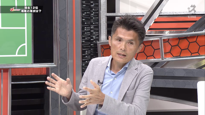 現在、湘南はJ1で11位に位置している。今シーズンの湘南について、名良橋は「得点を多く取るために、序盤は自分たちでボールを動かすことができていたが、相手も研究し始めた。本来の縦に速いスタイルが出ていなかったので、低迷していたところもある」と分析した。