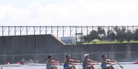 男子クオドルプル予選に出場した(写真右から)阿部・島田・青木・大下若き日本代表選手の活躍が期待される。 7日、世界ボート…